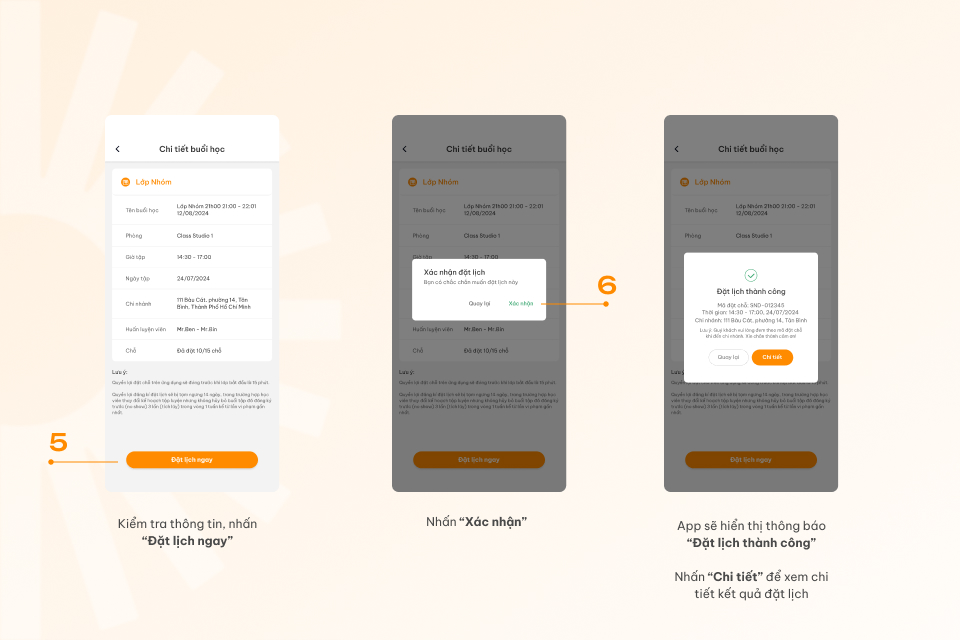 6. Hướng dẫn đặt lịch lớp trải nghiệm HLV